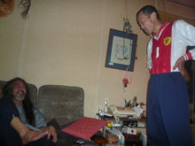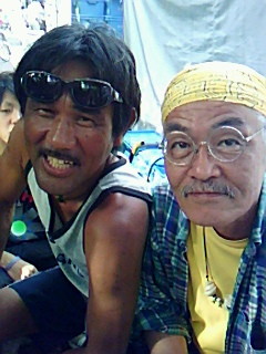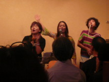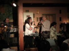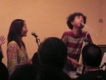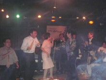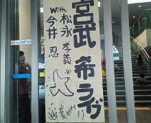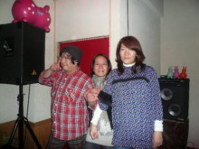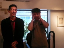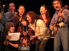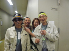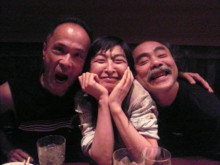 ![]() ライブ終了後、3人で 忍さんにプーさん電報 松永さんに説教中(笑)の清さん |