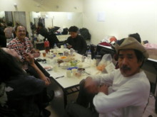 ![]() 翌朝 園長と利用者を囲んで この組み合わせも面白い 4人、はいるのか?