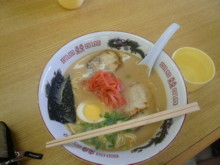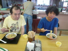 ![]() 名物山川ラーメン とんこつラーメンを食べる2人 |