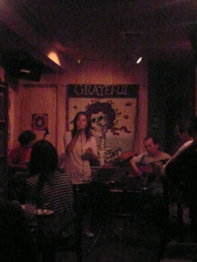 ![]() 『凛や』のチカさん ライブはじまり〜 ステージの後ろは大通り やる気満々のわたくし